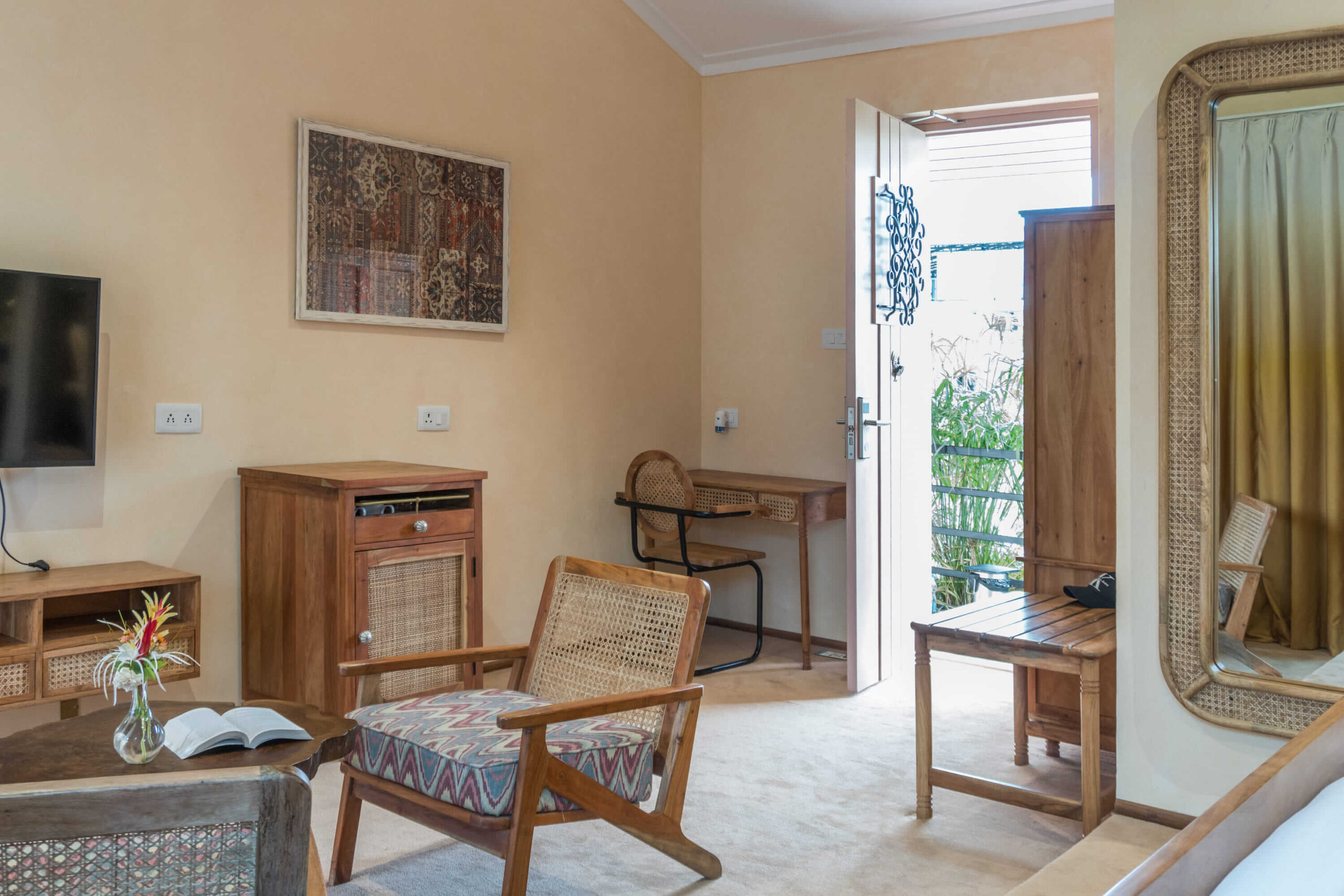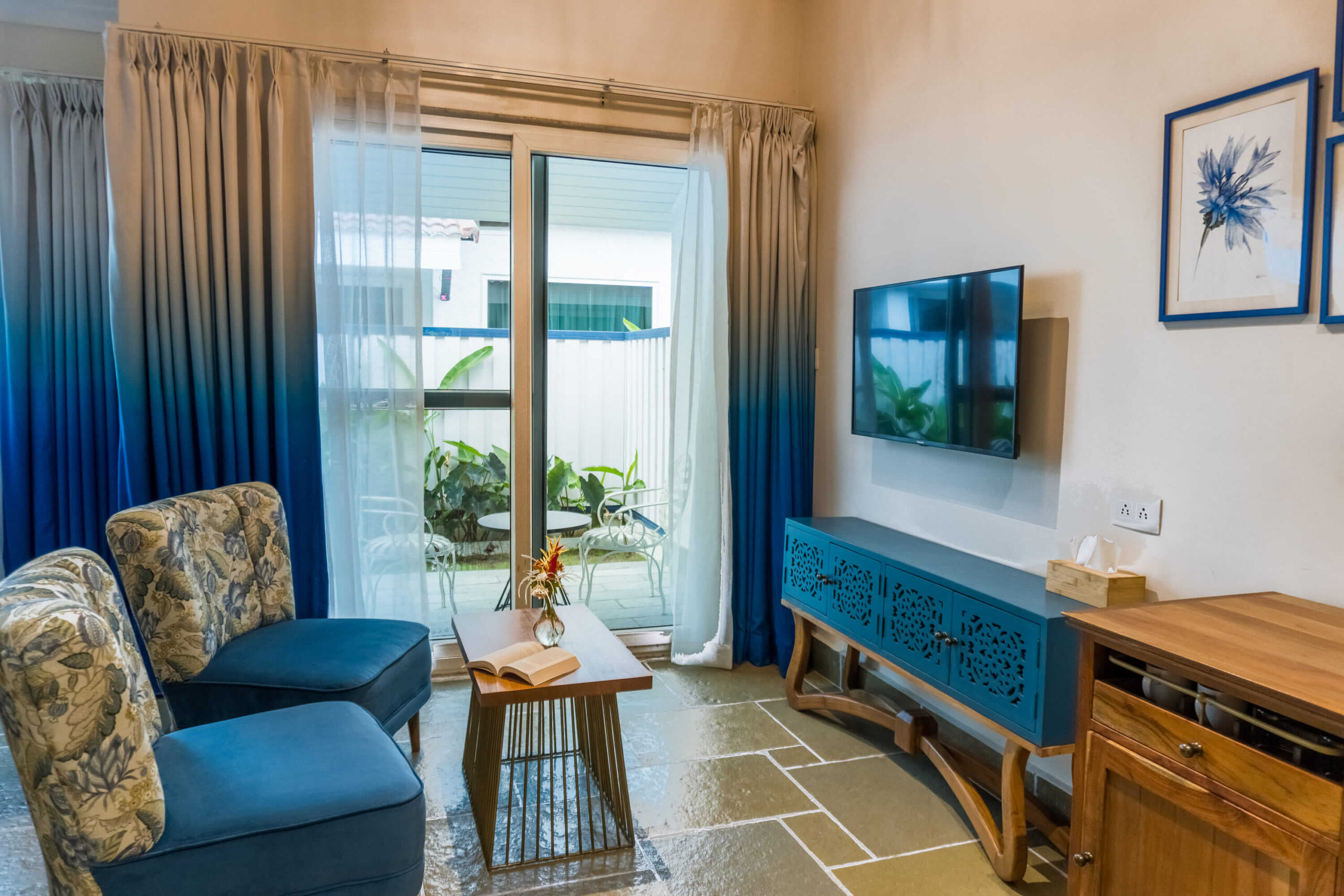 The resort’s interiors form a poetic blend of Bauhaus-inspired mid-century aesthetics and vintage Mediterranean charm. Interiors are thoughtfully curated with artisanal details, warm textures, and timeless materials that evoke nostalgia while offering refined comfort. Every space is designed to tell a story—through sculpted forms, and handcrafted accents that invite guests to pause and unwind. The master plan extends this narrative outdoors, celebrating the riverfront with sustainable landscaping, shaded groves, and open vistas that seamlessly merge the interior experience with the natural surroundings.