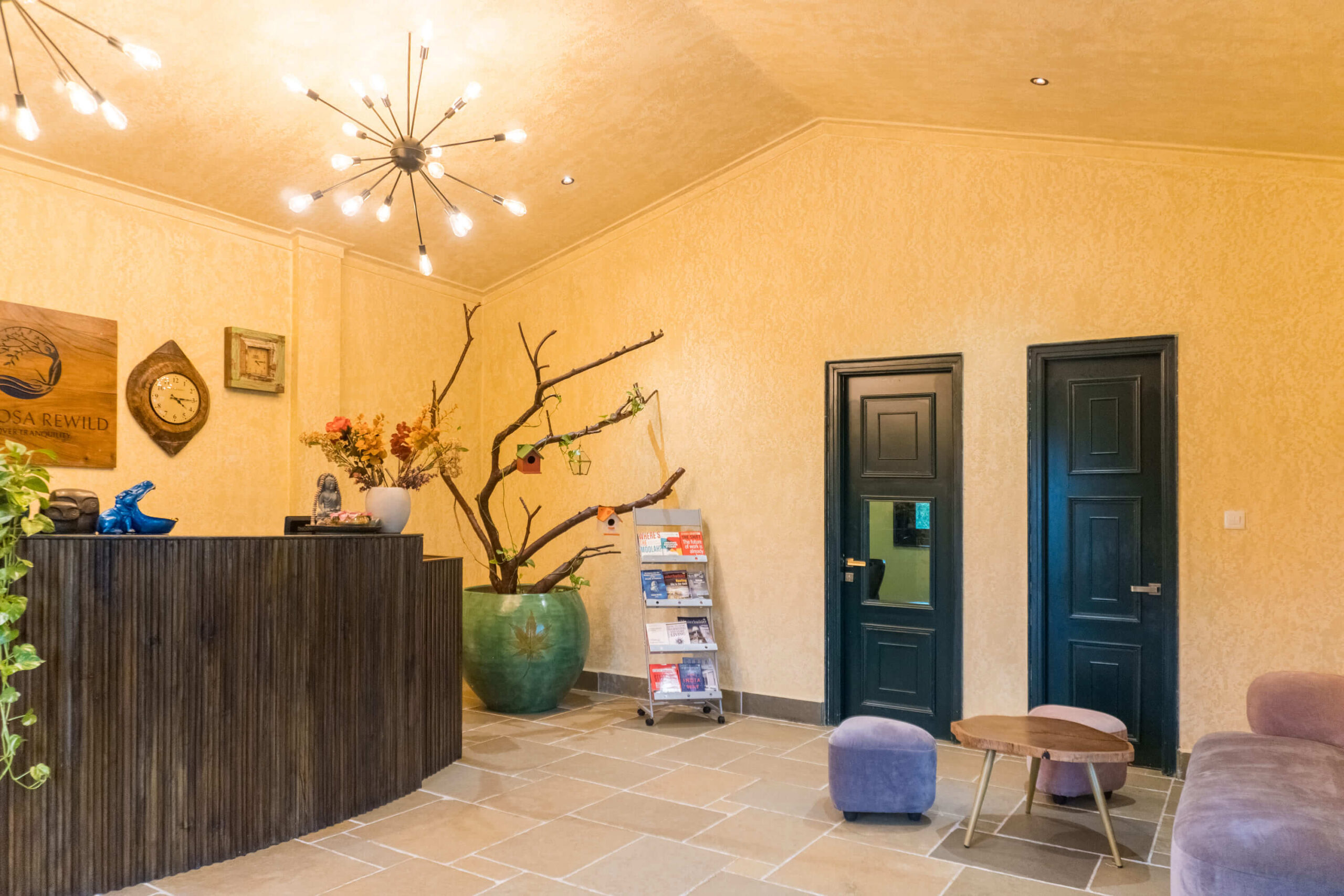- Reception: Welcoming space with Bauhaus-inspired details and refined vintage ambiance.